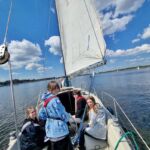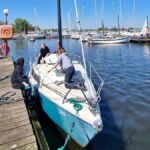 Zajęcia na przystani uzależnione są zawsze od pogody. Początkowo nic nie wiało, ale udało nam się przepłynąć jachtem motorowym „Fryderyk” dookoła wyspy Czapli Ostrów. Odcumowaliśmy z Mariny PTTK i Dąbską Strugą, Regalicą i Kanałem Jacka czyli Dąbskim Nurtem wróciliśmy na jezioro Dąbie Małe. W tym czasie wiatr powoli zaczął się ruszać, więc szybko przygotowaliśmy do pływania żaglówkę „Dum” i sprawdziliśmy czy umiemy trzymać kurs. Dla części z nas były to pierwsze próby za sterem, więc wychodziło trochę zabawnie (ale bezpiecznie!). Potem tylko klar na pokładzie i do następnego rejsu. Może gdzieś dalej?